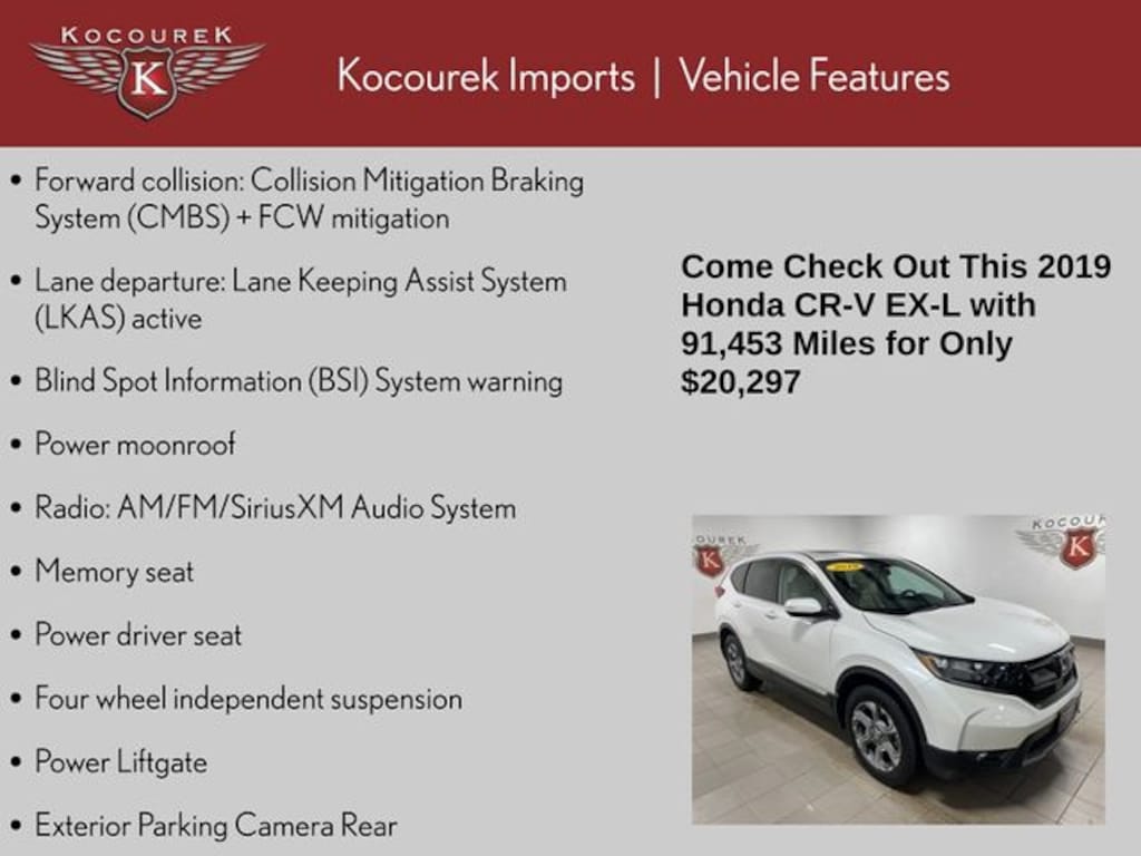 Please call one of our knowledgeable Sales Consultants with any question you might have. Serving guests in Marathon, Portage, Langlade, Oneida, Taylor, Vilias, Wood, Clark, Lincoln, Waupaca or near me! 2019 Honda CR-V EX-L